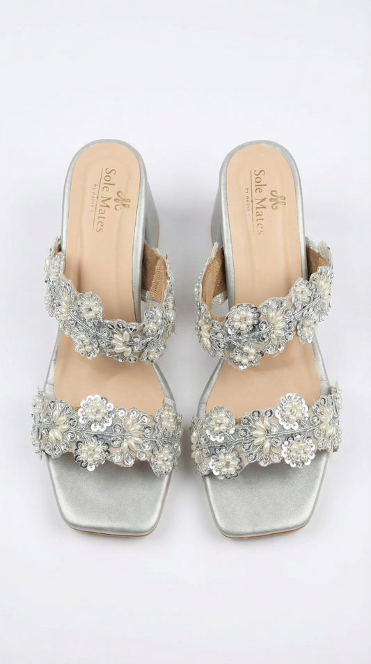 Aria Silver Block heels