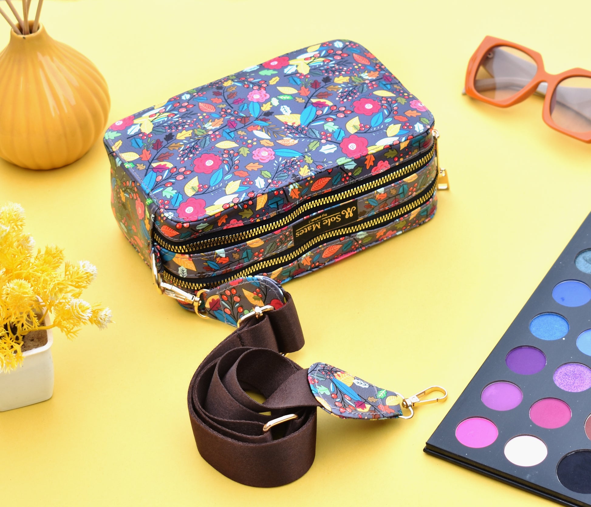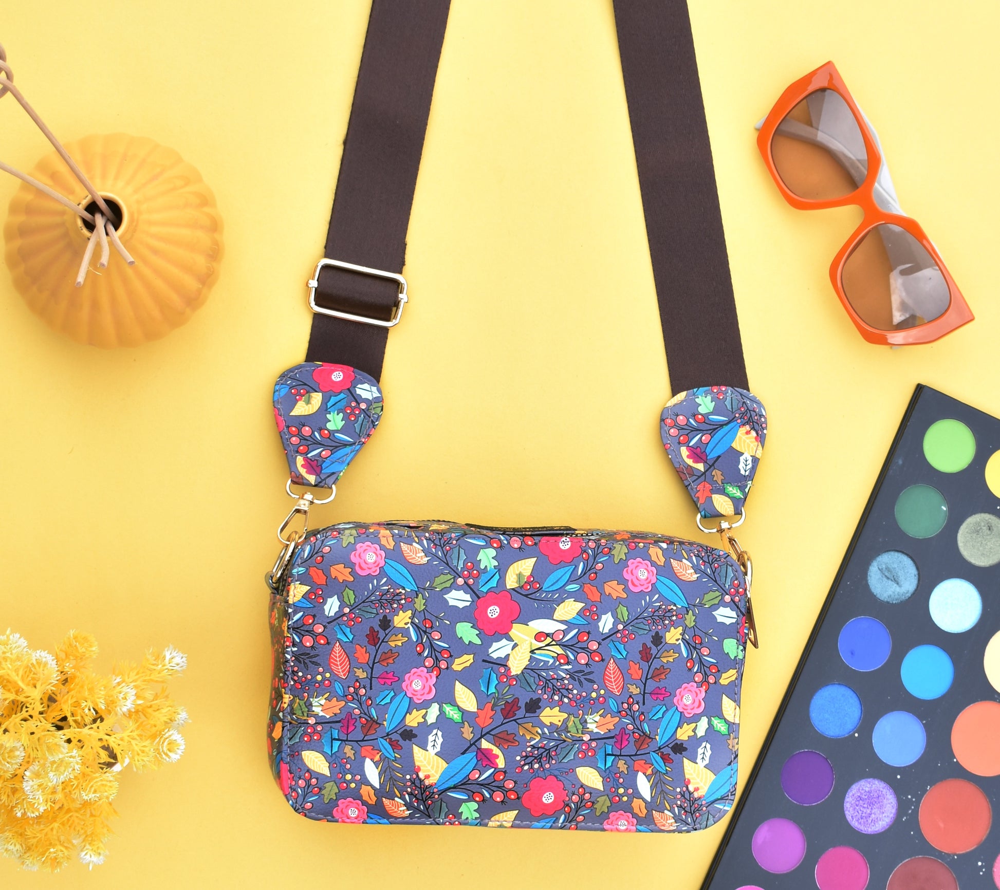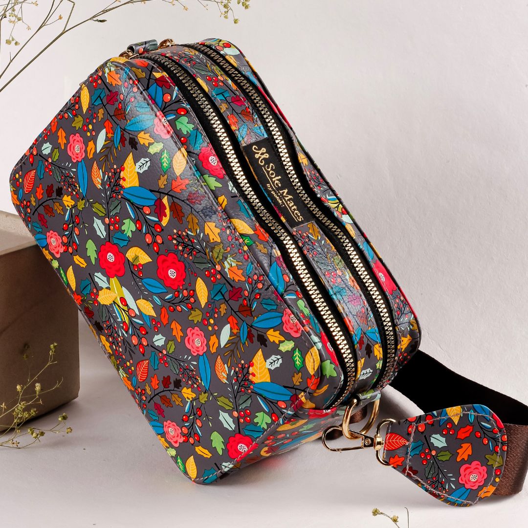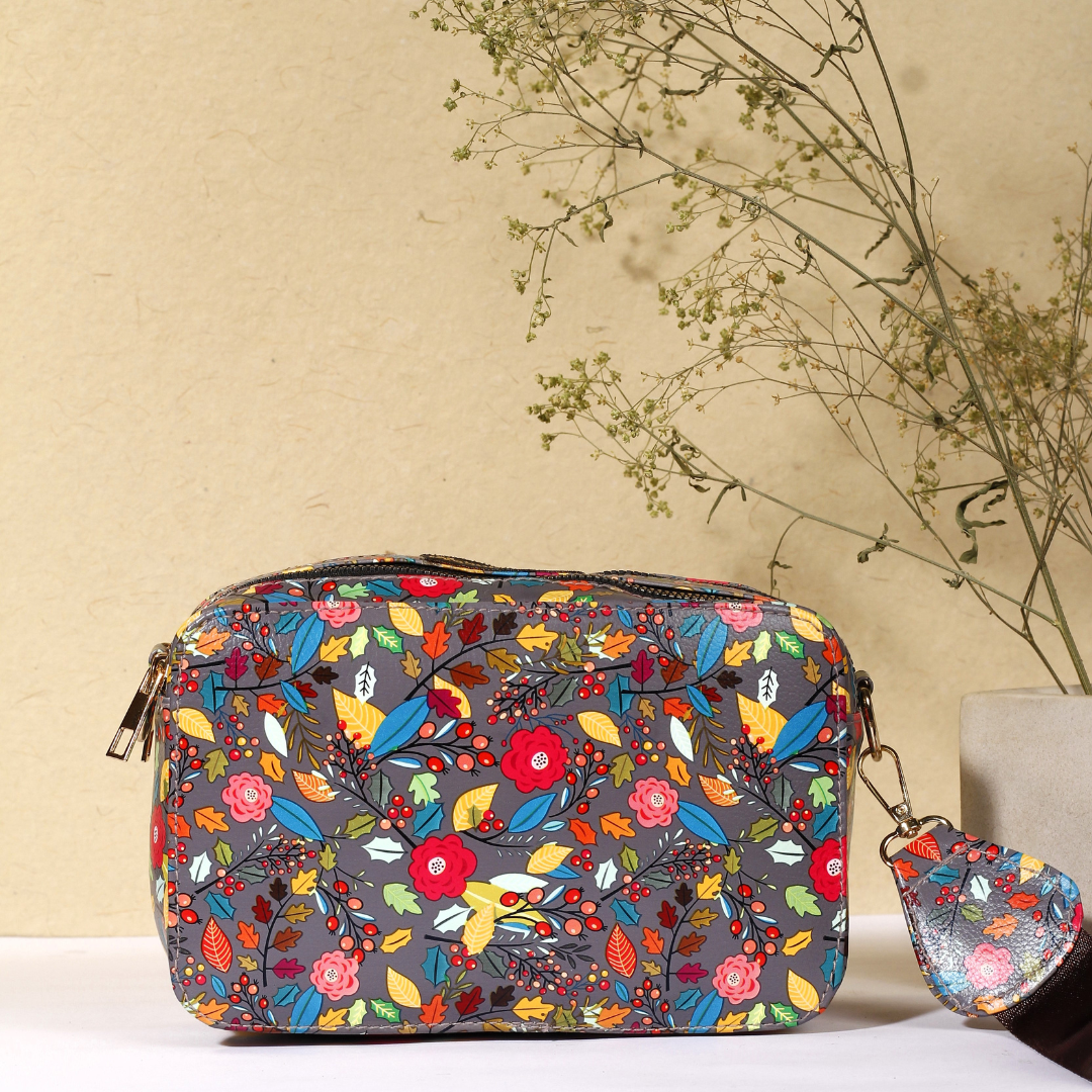 The must-have cross body bag features a Grey floral 3D printed pattern on faux leather. It has two zipper pockets to accommodate all sizes phones and your last minute essentials your keys, cards, lipsticks, ear pods. Also this bag is perfect for your next vacation or day out plans.
