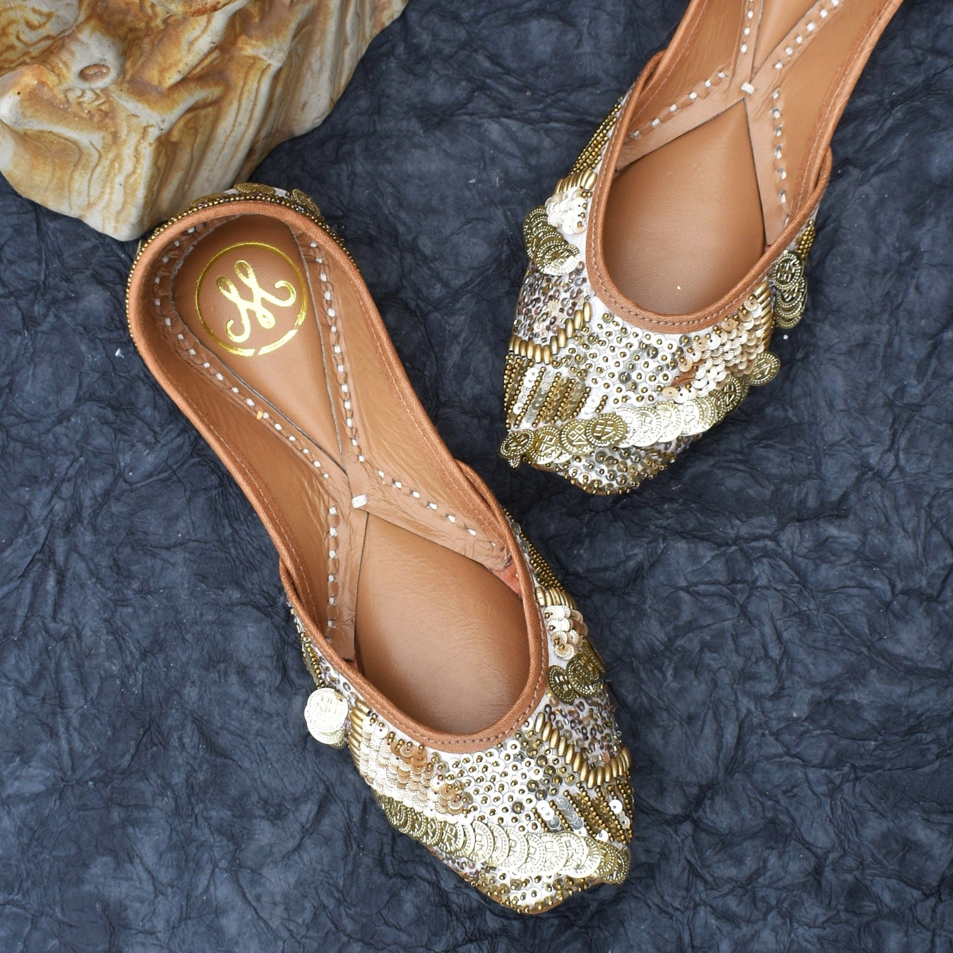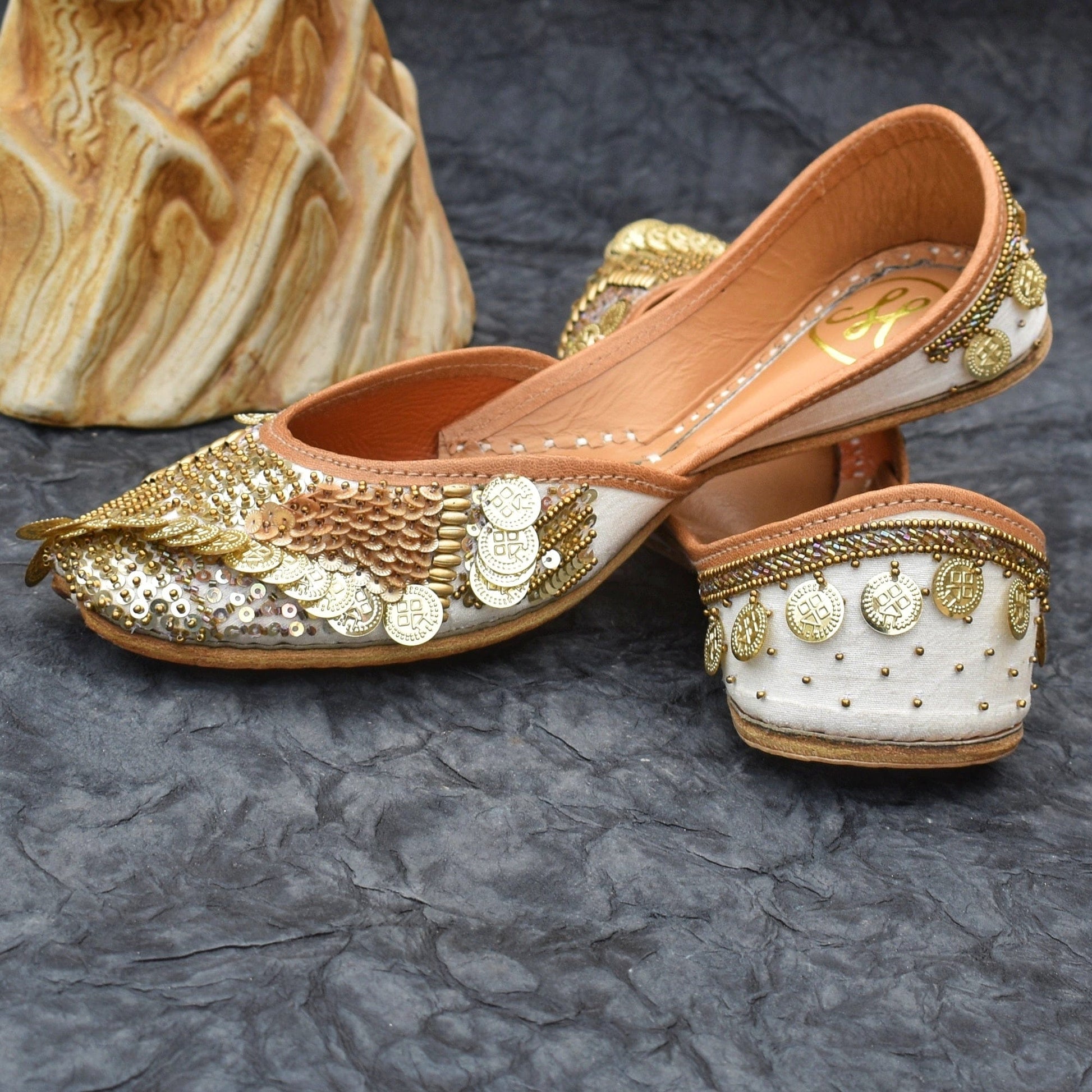 Ask for a Stunning Gold Jutti And we Present DARPAN. Dazzling in distinguised design on an ivory base